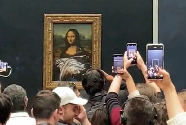 According to it, the incident took place on Sunday. The video footage posted on Twitter shows a young man throwing a piece of cake and smearing it on the armored glass that protects one of the world's most famous artworks. He was able to get as close as possible by disguising himself as a disabled woman; there is a special passageway in front of the painting for wheelchair users, which is closer than the corridor for regular visitors.