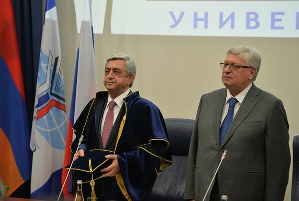 At the beginning of the meeting Rector Anatoly Torkunov read the decision of MGIMO’s scientific board, by which the President of Armenia was awarded with the title of Honorary Doctor of MGIMO. Introducing the guest the rector stressed that the visit of the Armenian President to the MGIMO is a sign of great respect towards the students and particularly the Institute.
