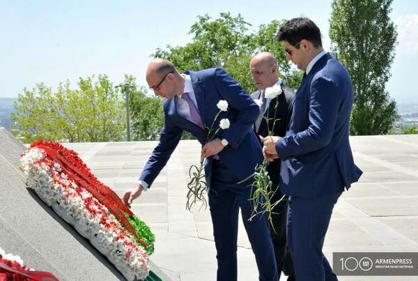 The Belarusian delegation on May 17 visited the Tsitsernakaberd Armenian Genocide Memorial to pay tribute to the memory of the innocent victims, as well as the Armenian Genocide Museum-Institute.