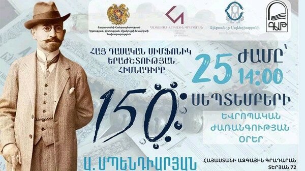 A unique exhibition dedicated to the 150th anniversary of Armenian composer Alexandr Spendaryan will open on September 25, at 14:00 in the large exhibition hall of the National Library of Armenia. As the Ministry of Education, Science, Culture and Sport reports, the event is organized as part of the European Heritage Days and inter-museum cooperation.