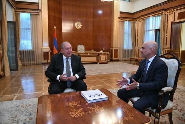 President of Armenia Armen Sarkissian received on October 8 prominent U.S.-Armenian doctor and producer of Armenian Genocide-themed film ''The Promise'', public figure and member of the AGBU Central Board of Directors Eric Esrailian.