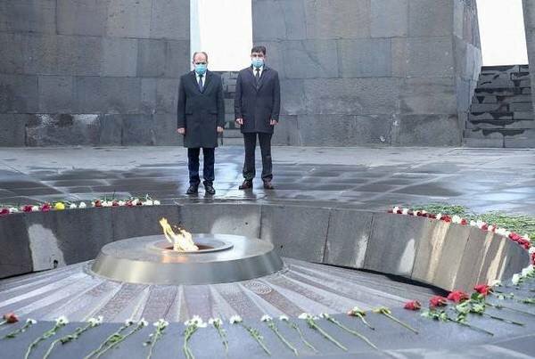 On the occasion of the International Day of Commemoration of and Dignity of the Victims of the Crime of Genocide, Deputy Foreign Minister of Armenia Armen Ghevondyan, ministry’s secretary general Boris Sahakyan and other representatives visited today the Tsitsernakaberd Memorial to pay tribute to the memory of the innocent victims of the Armenian Genocide, the Holocaust and the Assyrian, Yazidi genocides, the ministry reports.