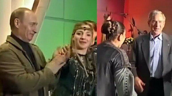 It shows him dancing to a Russian folk song with Vladimir Putin in the background.