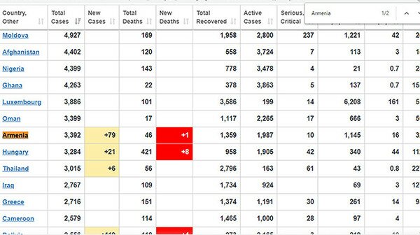 Armenia has confirmed 79 new coronavirus infections, bringing the total number of cases to 3392 in the country as of 11 a.m. Monday, May 11, the Ministry of Health reports. 34 more patients have recovered from the disease with the total number of recoveries now standing at 1,359.