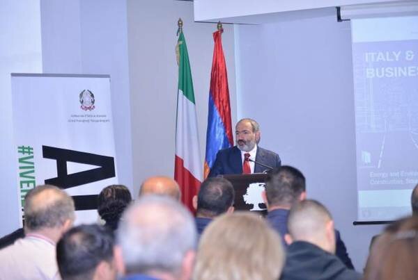 “One year ago an unprecedented, non-violent, Velvet Revolution took place in Armenia. During the past one year we were able to eradicate systematic corruption in political terms, eradicate monopolies in political terms. The revolution was also unprecedented with the fact that we don’t have a single case of property re-distribution. Economic shocks didn’t happen at all in Armenia, and the economy is in a phase of growth. As of now we have 7,1% GDP growth, and the economic activity index in April was 9,2%. We are saying that we plan to make Armenia a paradise for talented people. We are planning to create such an eco-system that every talented person will have the chance to realize their talent, get rich and enrich. You’ve appeared in Armenia in a truly right time, and the government is full swing determined to create an opportunity for the realization of your companies. I am inviting Italian...