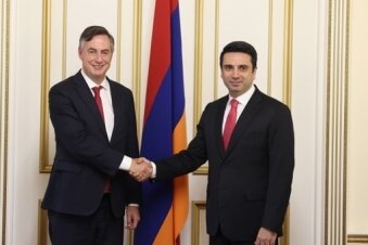 PanARMENIAN.Net - 22 июля спикер Национального собрания Армении Ален Симонян принял делегацию во главе с председателем Комитета по иностранным делам Европарламента (AFET) Дэвидом Макаллистером. Об этом сообщает пресс-служба НС РА.