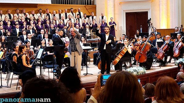 На концерте впервые прозвучала еще одна мировая премьера – хоровая пассакалья одного из самых известных композиторов современности – Карла Дженкинса, которую автор написал по просьбе оркестра и которая посвящена памяти жертв 44-дневной войны в Арцахе.